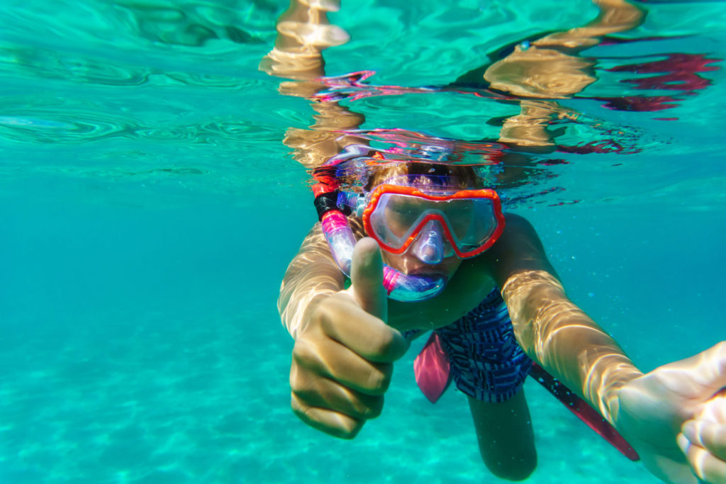 funny child diver in sea with mask swimming underwater ID: 34006 Funny child diver in sea with mask swimming underwater.