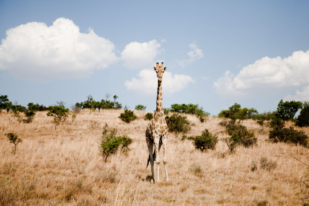 Giraffe standing in safari field ID: 78386 Young giraffe standing in field, safari trip in South Africa.