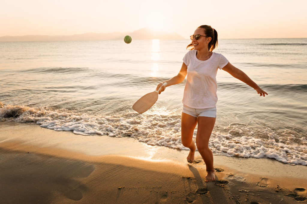 Girl playing beach tennis