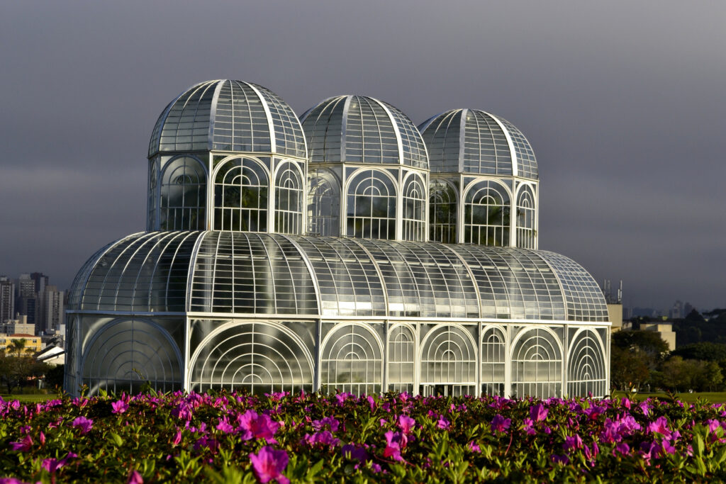 Grey greenhouse in Botanical Garden in Curitiba, PR.