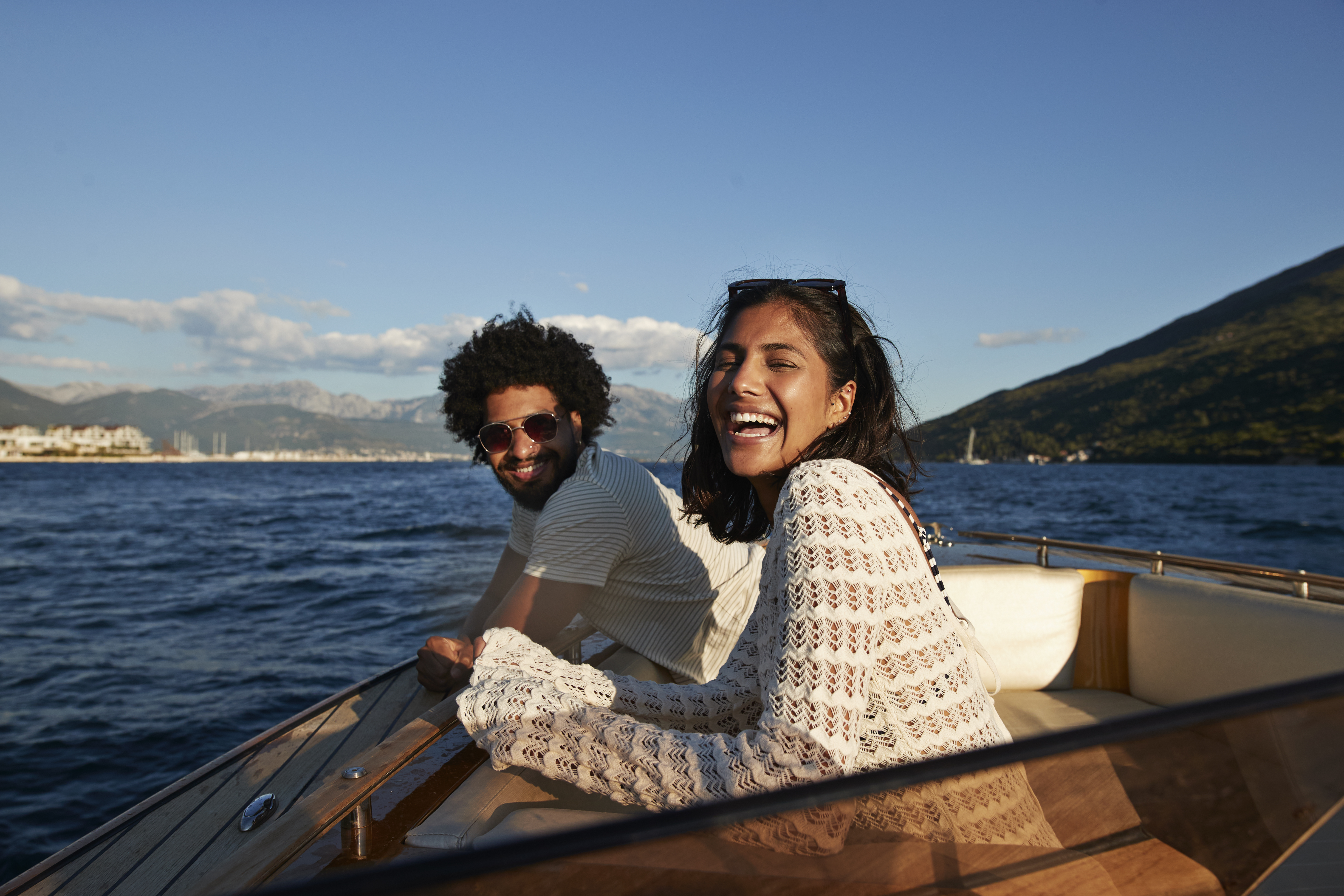 Happy young couple enjoying in motorboat ID: 69795 Happy young couple enjoying in motorboat on sunny day during vacation