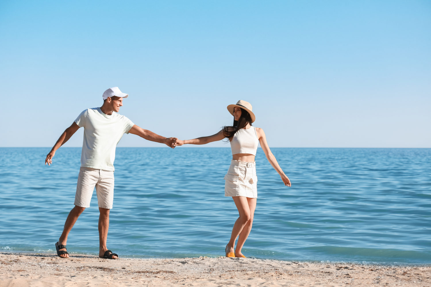 Happy young couple on sea beach