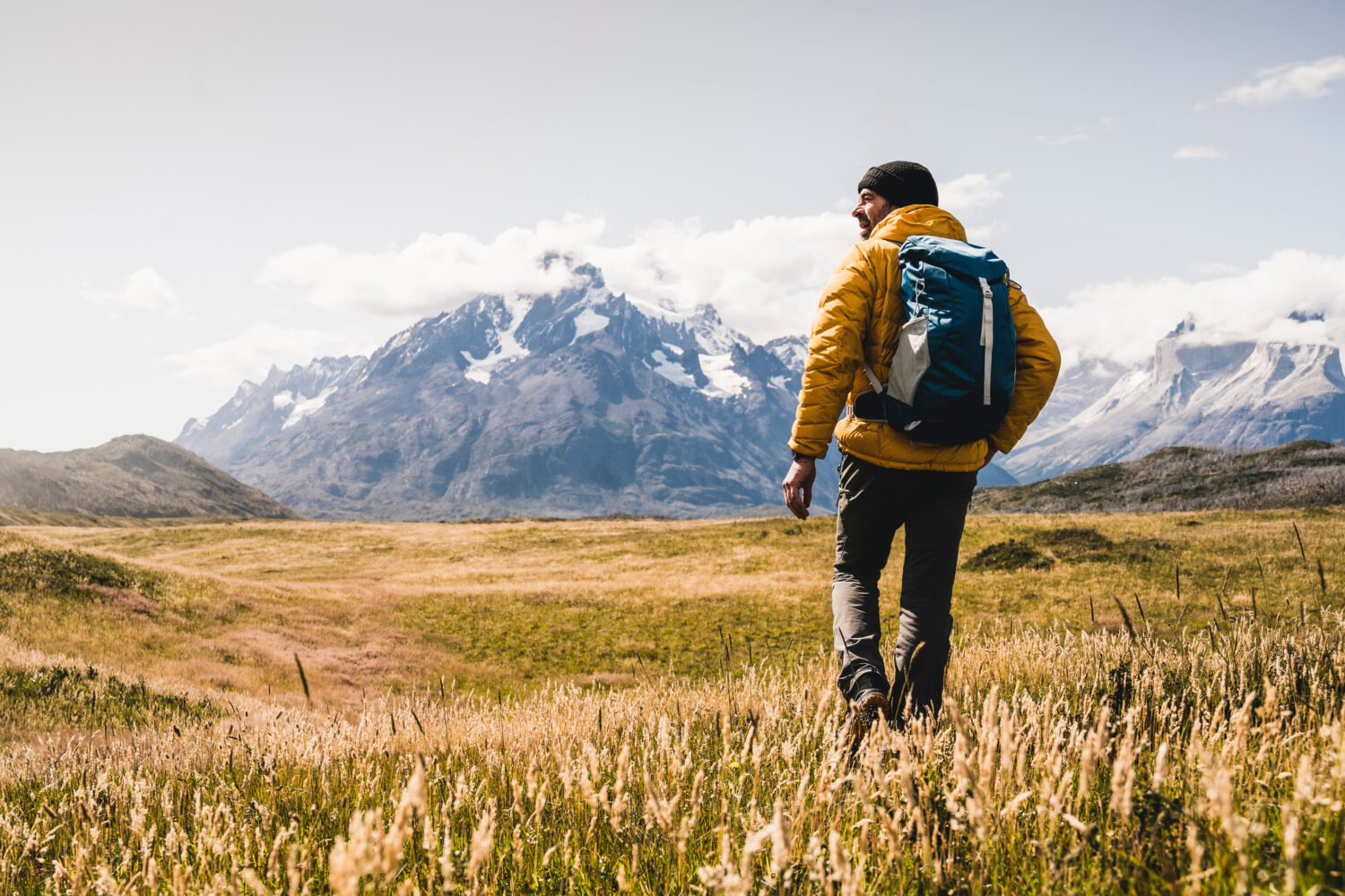 hombre con mochila en el parque nacional torres del paine