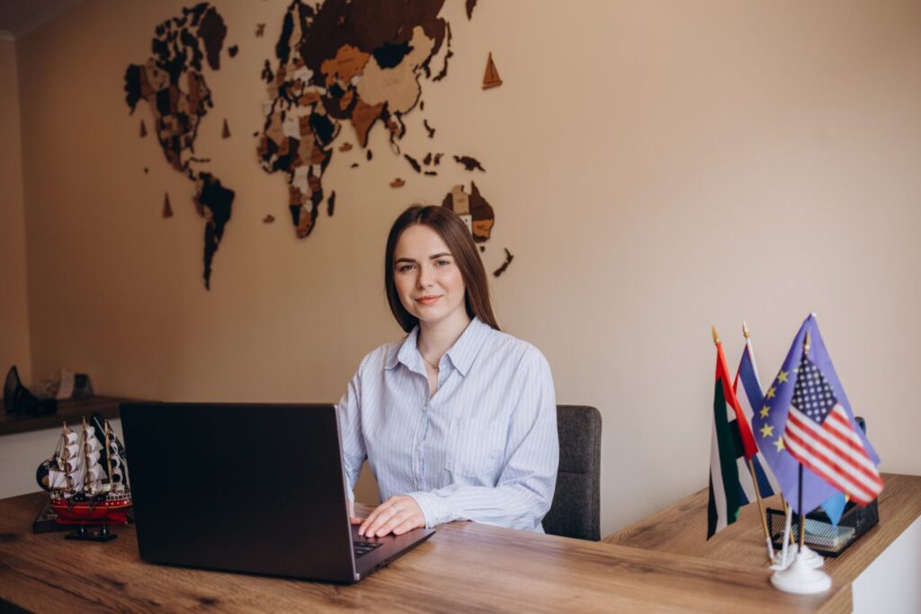 joven agente de viajes exitosa secretaria trabajadora de negocios con