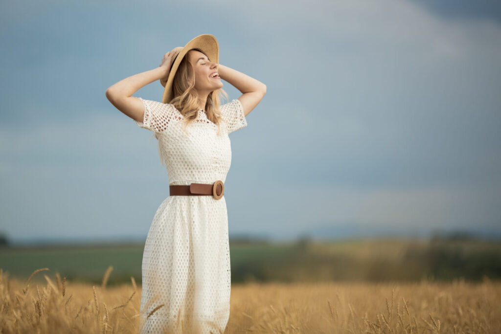 joven atractiva mujer y campo de trigo dorado concepto de ID: 82994 Joven atractiva mujer y campo de trigo dorado. Concepto de cosecha.