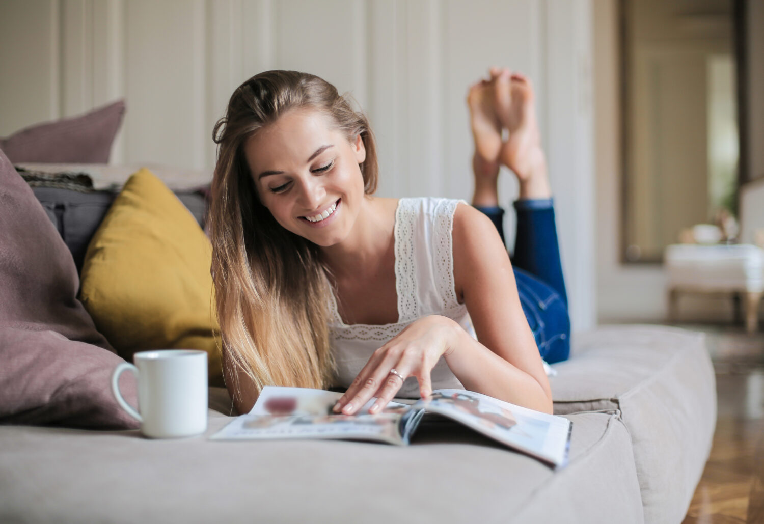 Joven feliz leyendo una revista