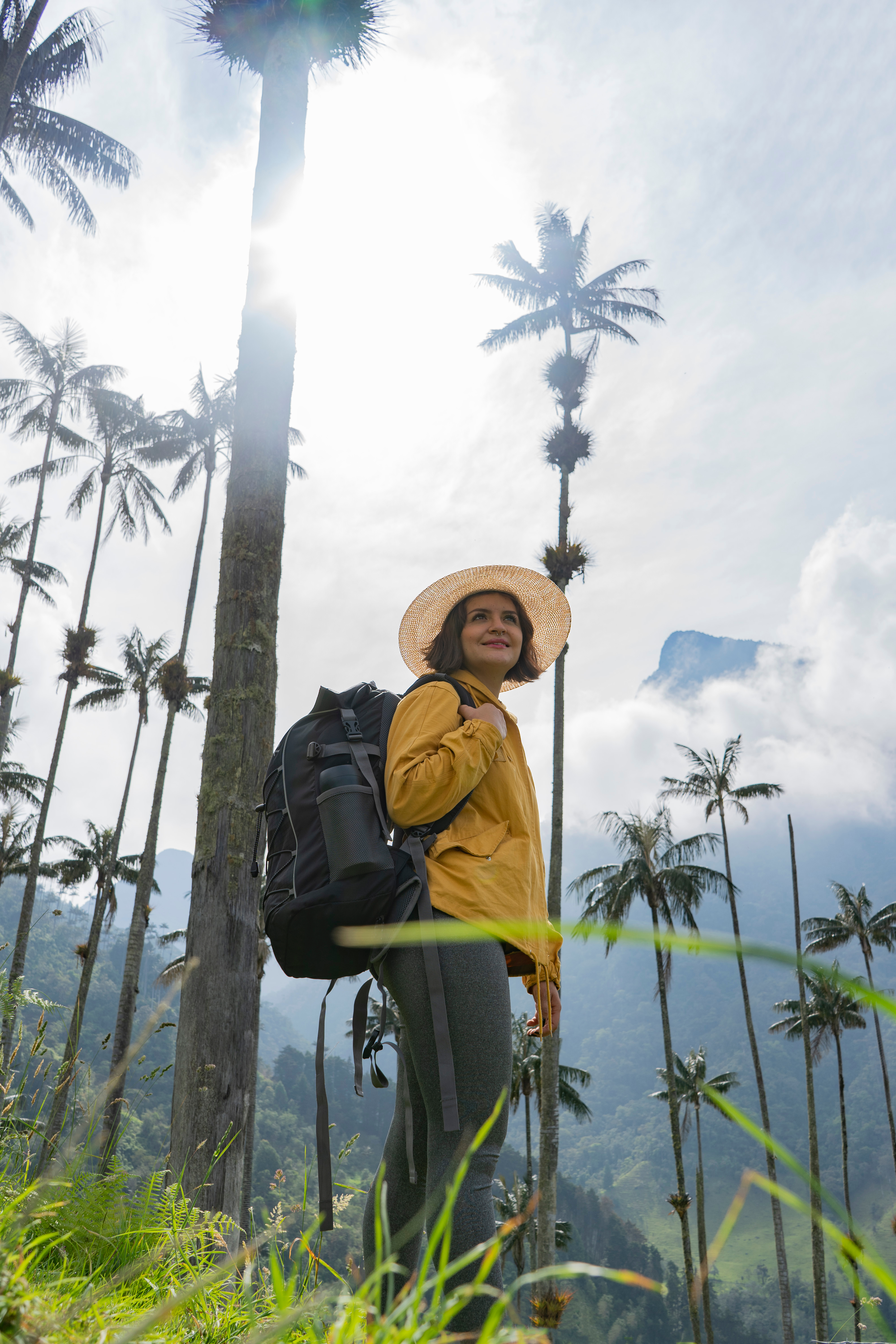 jovencita viajando sola. una mujer viajante en medio de la naturaleza. valle de cocora