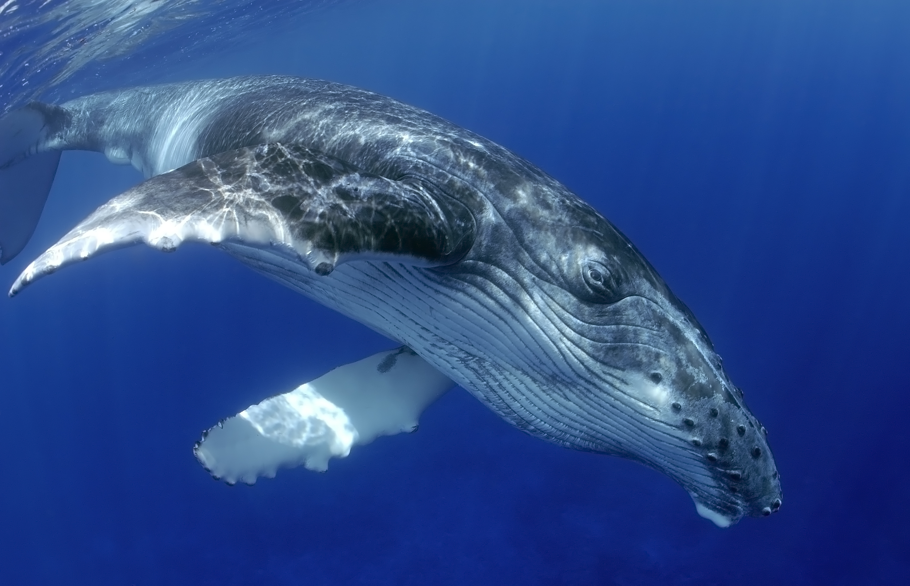 jovenes ballenas de humpback nadando en la superficie cerca de