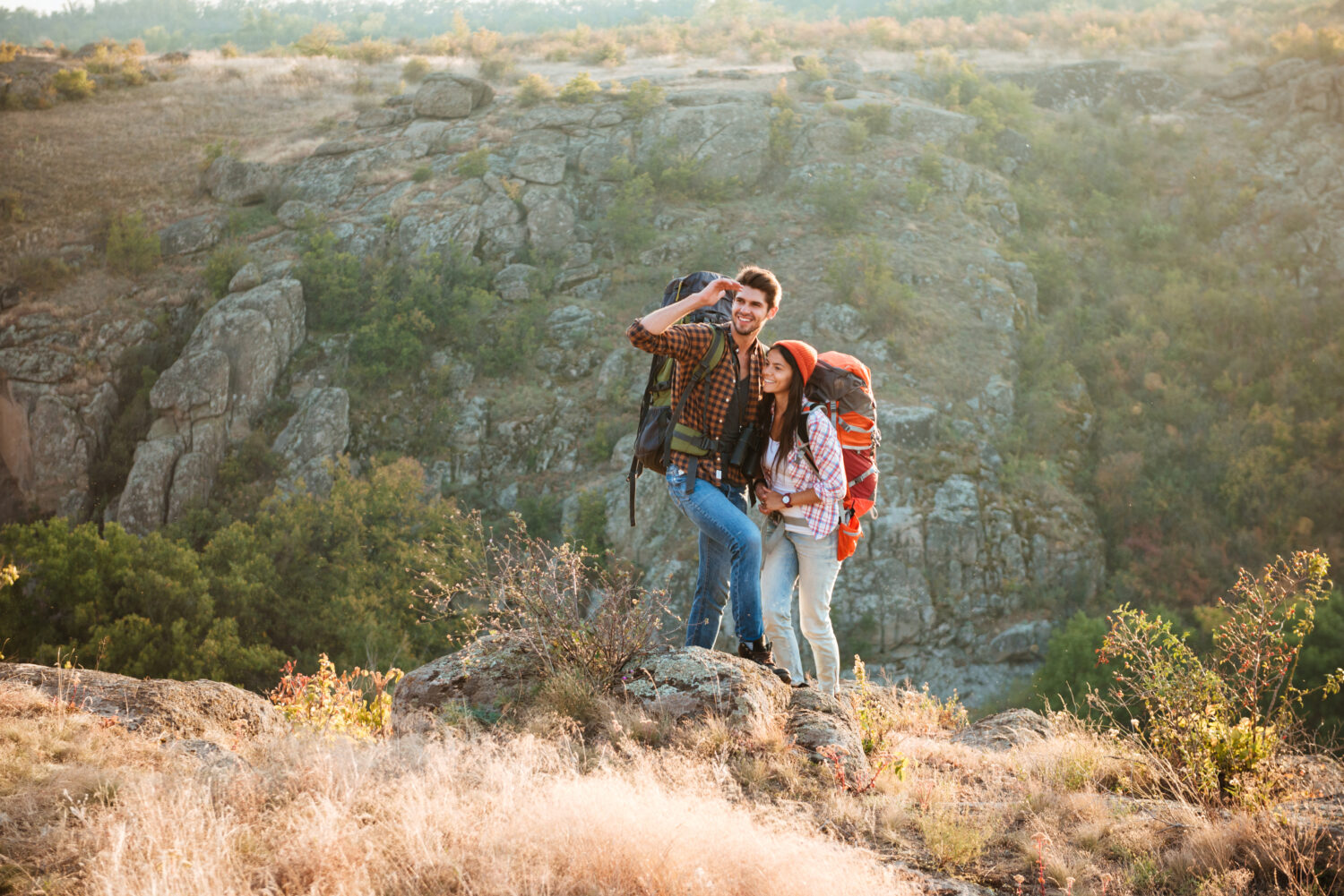la pareja de viajeros en pendiente mira lejos ID: 88347 La pareja de viajeros en pendiente mira lejos