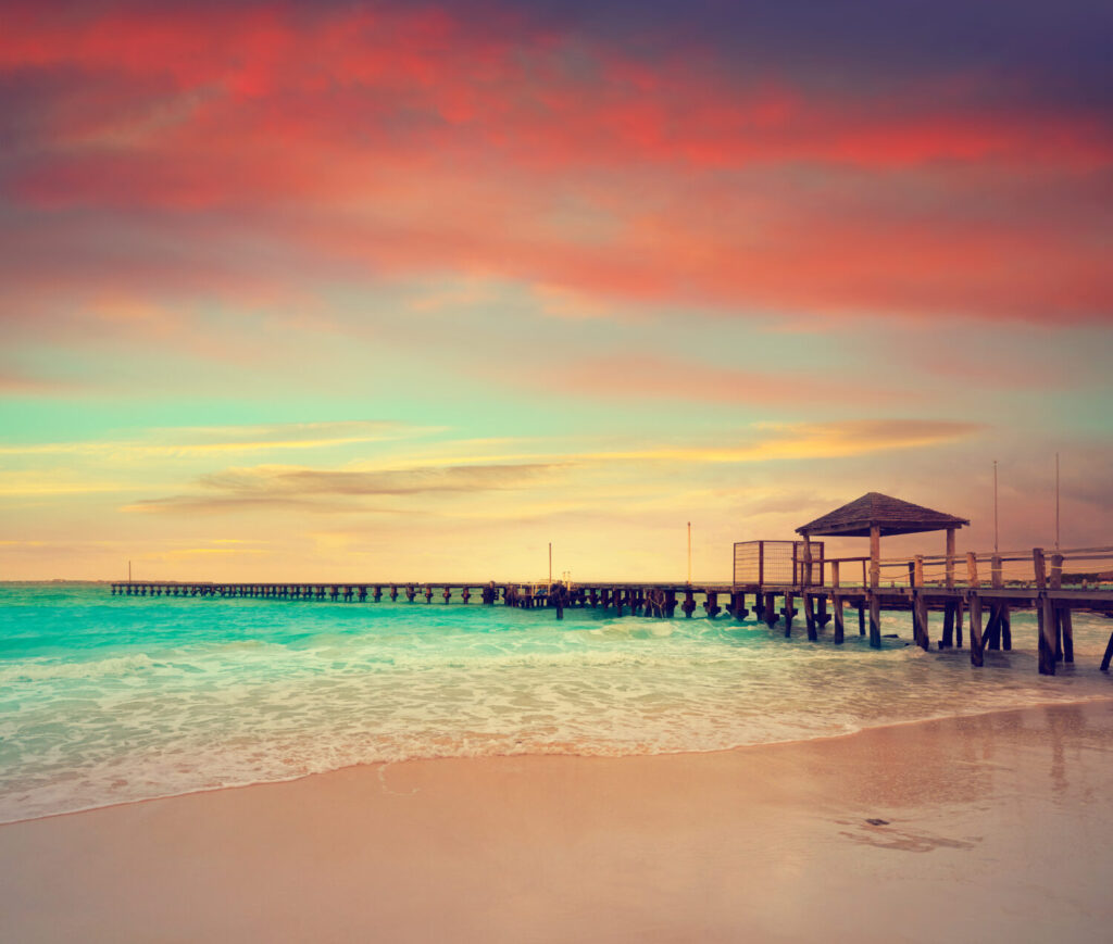 La puesta de sol de la playa de Caracol en México en el Hotel zone hotelera
