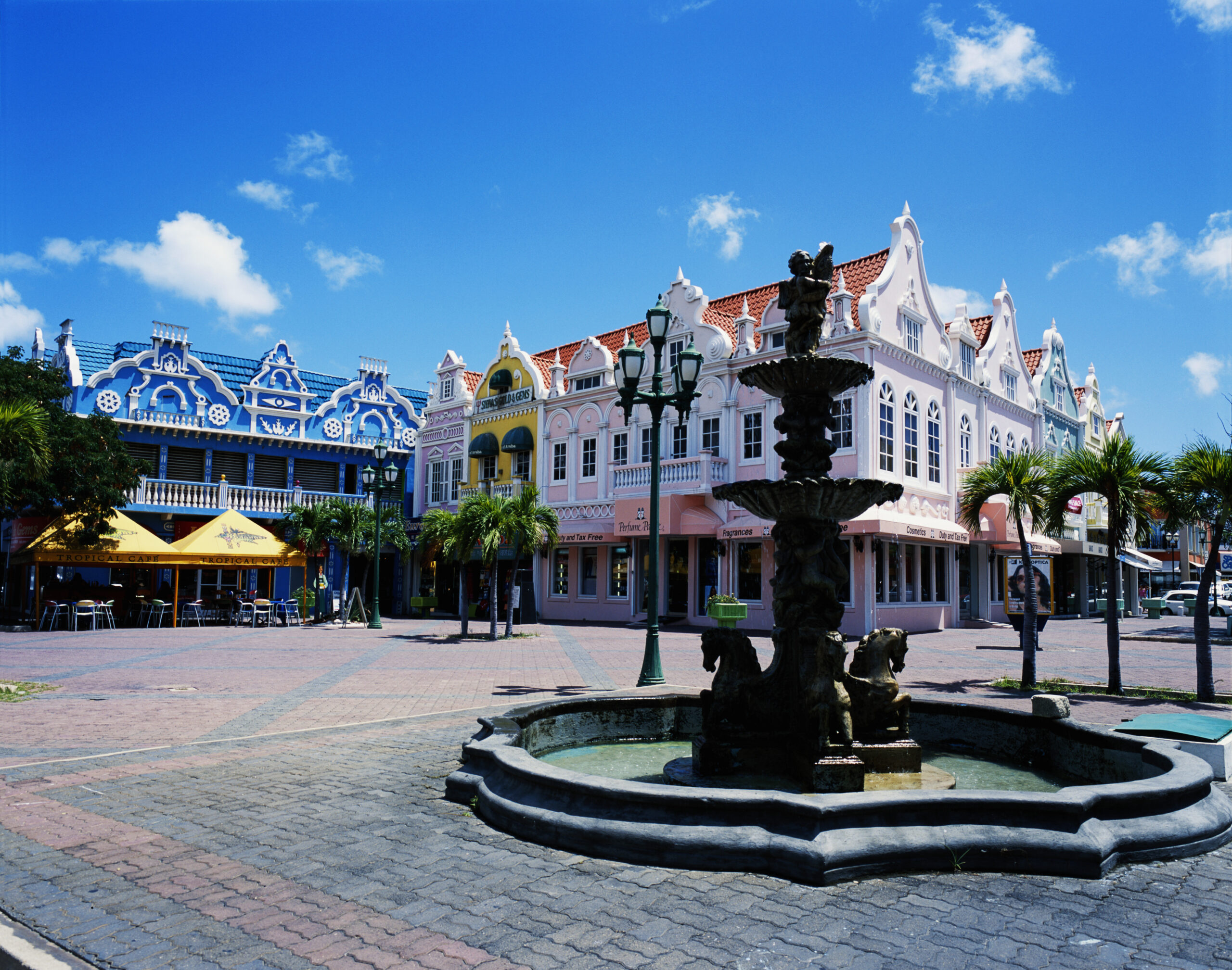 Leeward Dutch Antilles, Aruba, Oranjested, fountain in town square