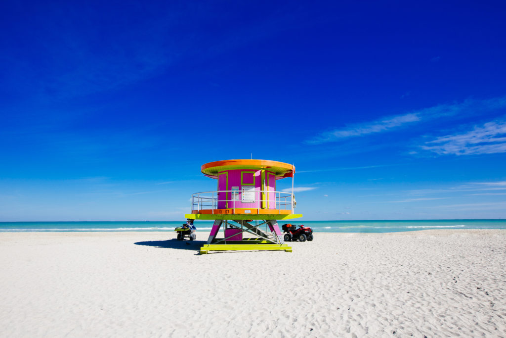Lifeguard tower on a sunny day in South Beach, Miami, Florida, USA