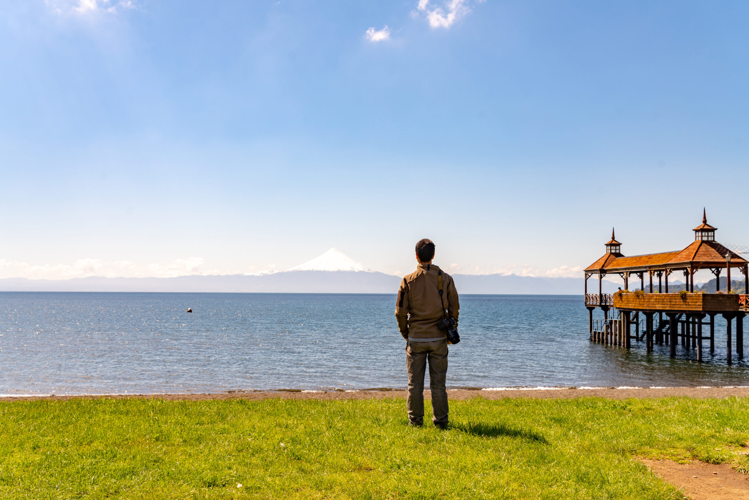 Looking at Osorno Volcano – Lakeshore view at Frutillar, Región de los Lagos, Chile