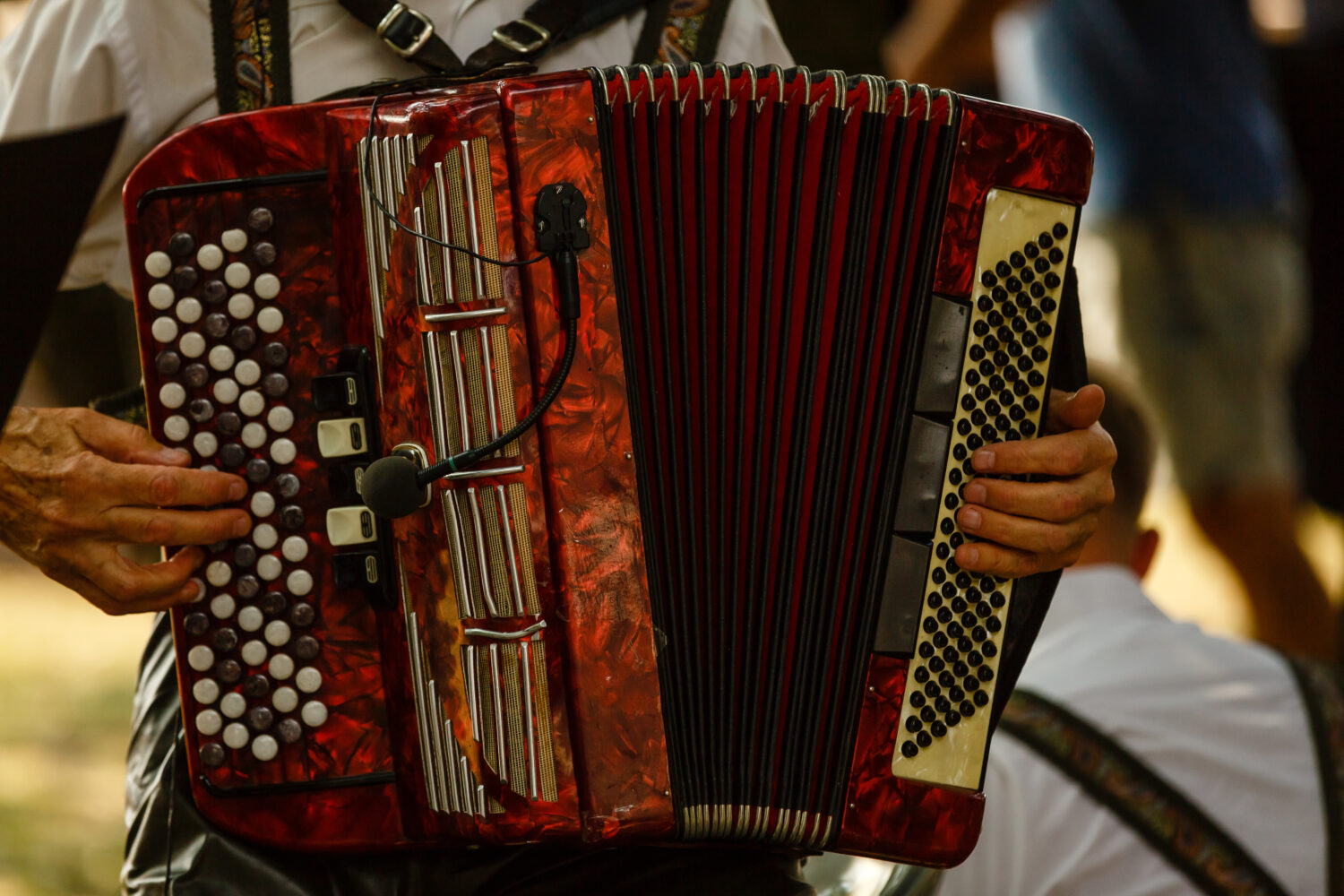 Los antiguos botones de acordeón raros cierran la vista. Foto de poca luz.