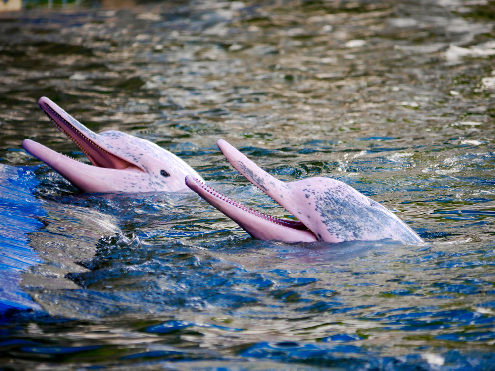 Los delfines rosados nadan en parejas.
