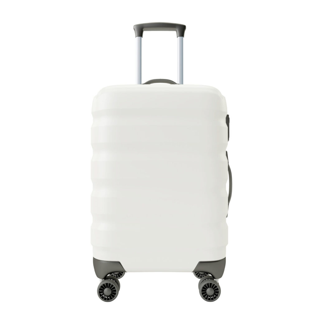 Maleta blanca aislada sobre fondo blanco.