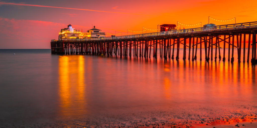 Malibu Pier Malibu Beach PCH Colorful Red Orange Yellow Clouds Sunset