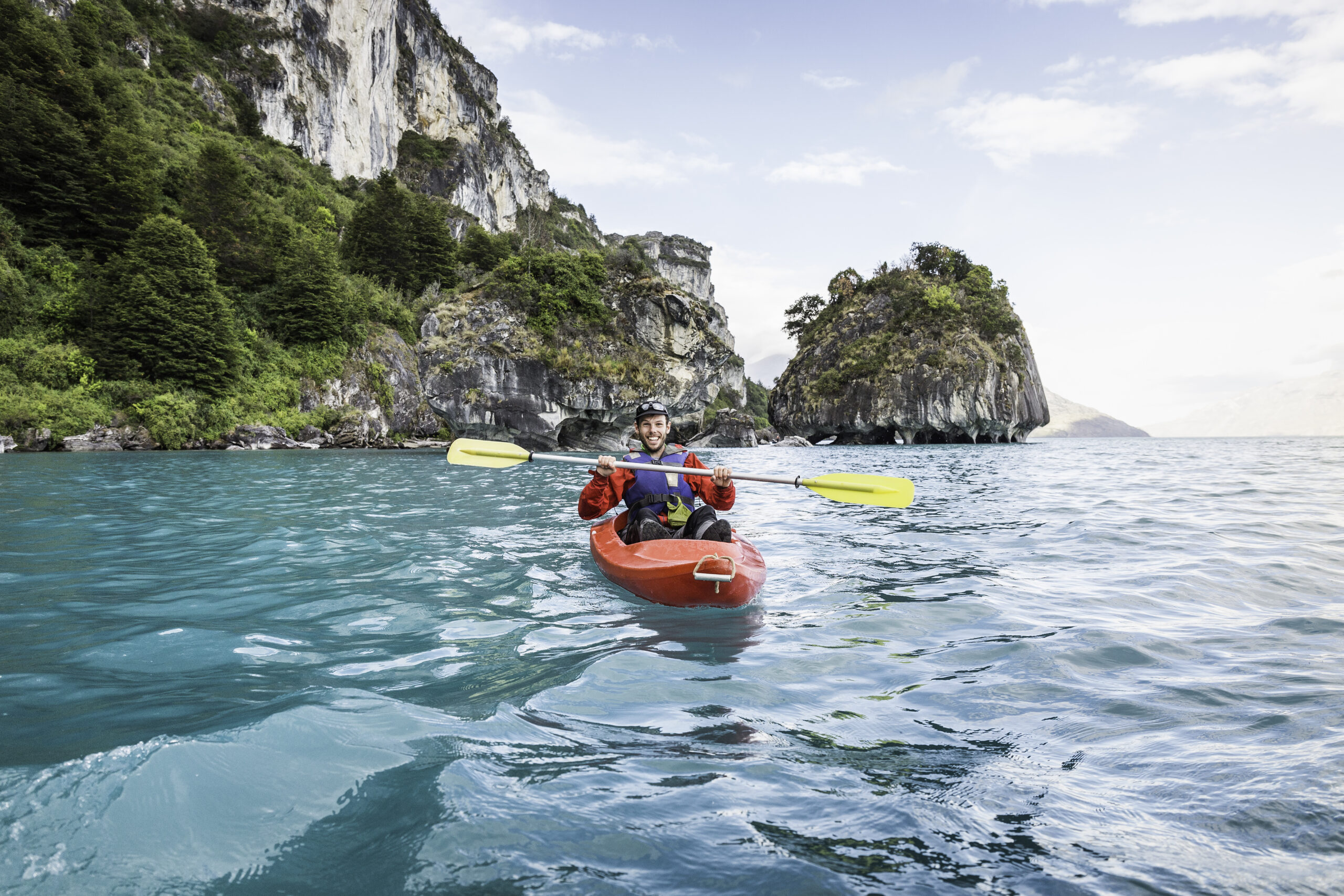 Man kayaking on General Carrera Lake, Puerto Tranquilo, Aysen Region, Chile, South America ID: 78782 -1