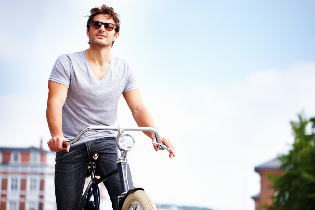 Man riding a bicycle in the city