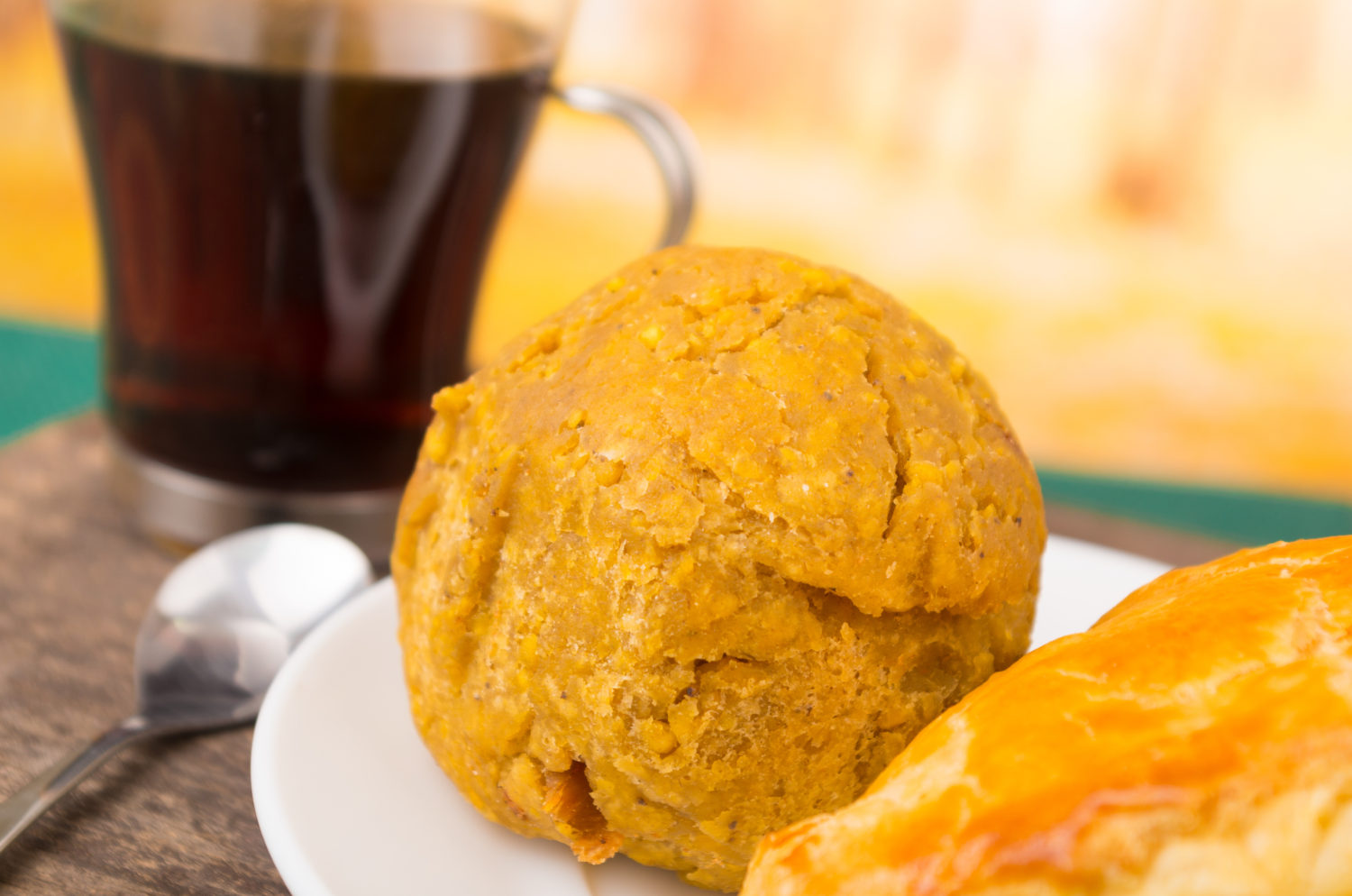 mashed green banana in a circle form behind coffee ID: 43559 Mashed green banana in a circle form, behind coffee