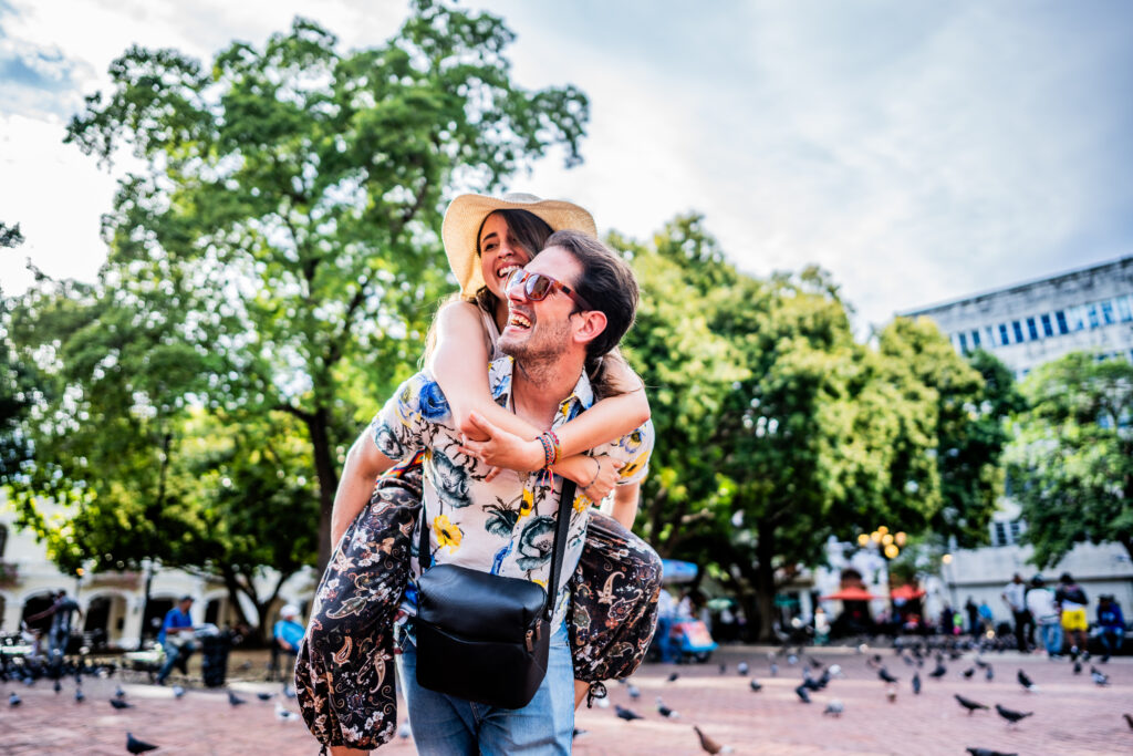 Mid adult man giving piggyback ride to girlfriend in the city ID: 76688 Mid adult man giving piggyback ride to girlfriend in the city