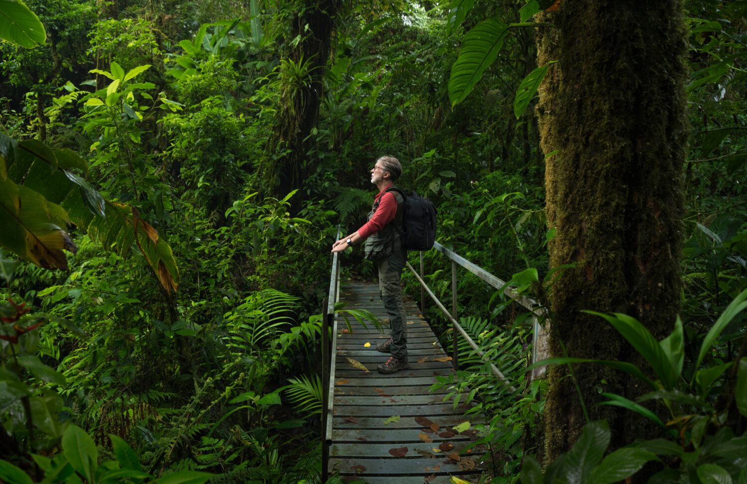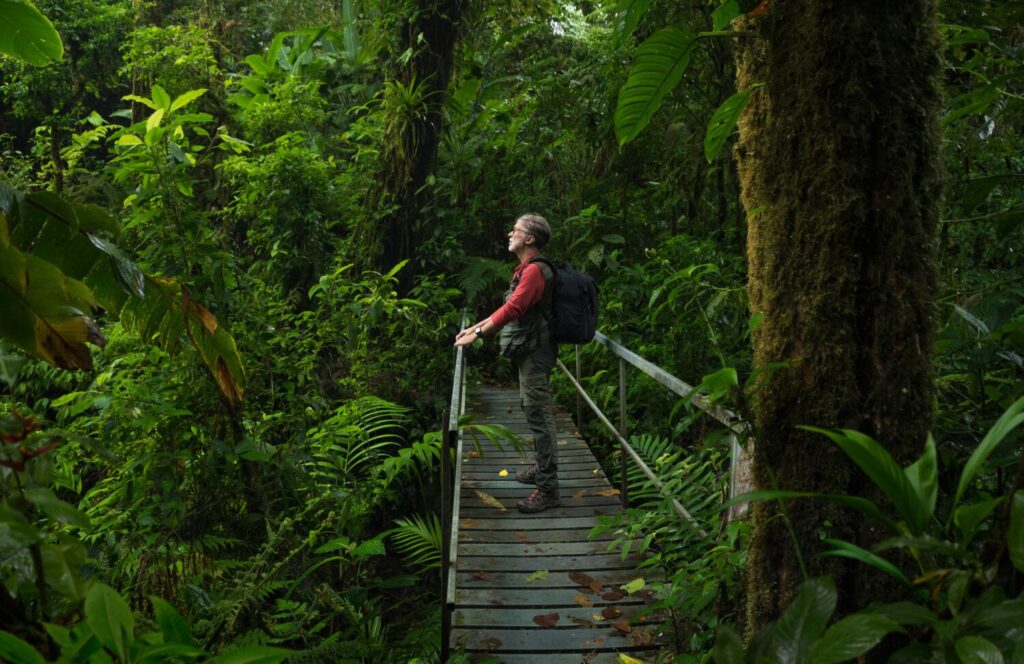 mochilero sobre un puente colgante en la selva ID: 80226 Mochilero sobre un puente colgante en la selva