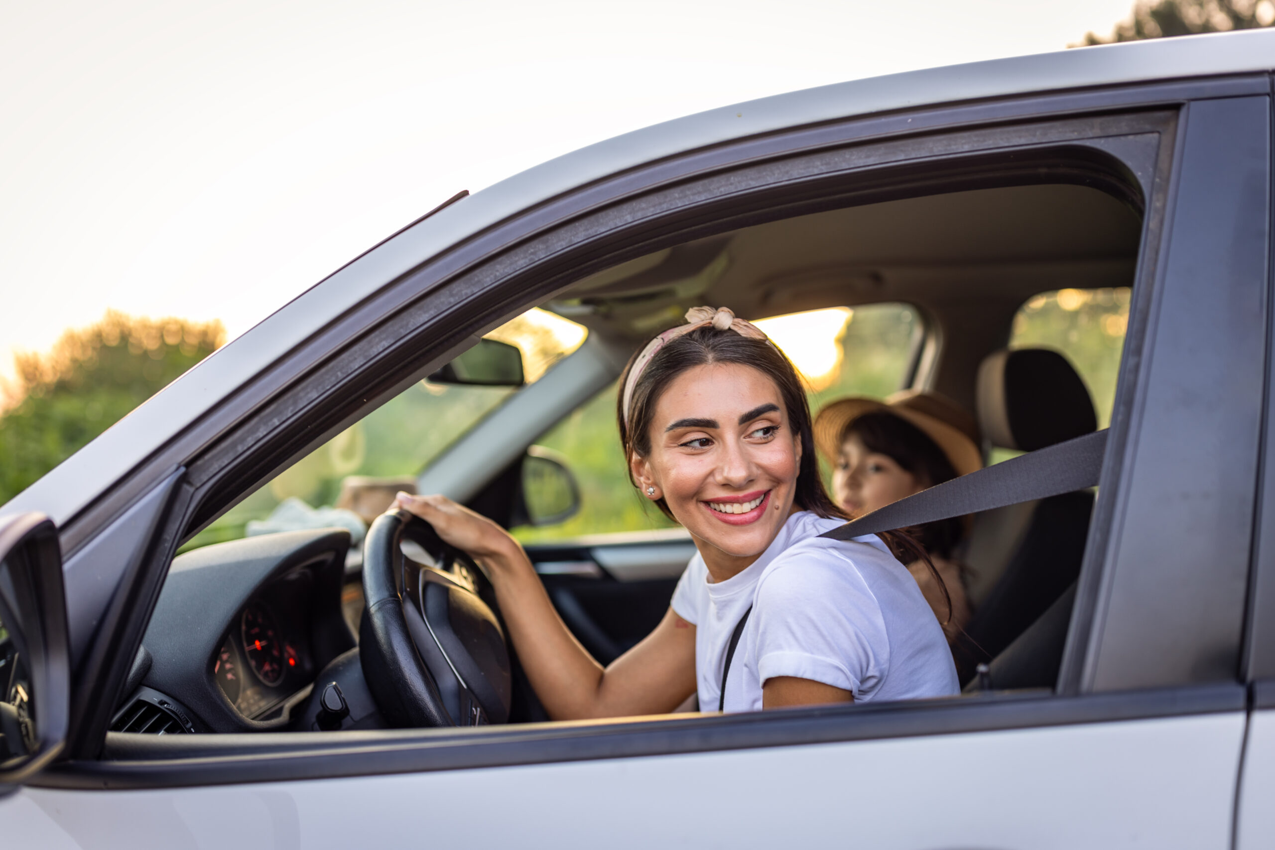 Mother and daughter travelling by a car ID: 77530 Photo of young mother and her daughter in the car on a road trip.