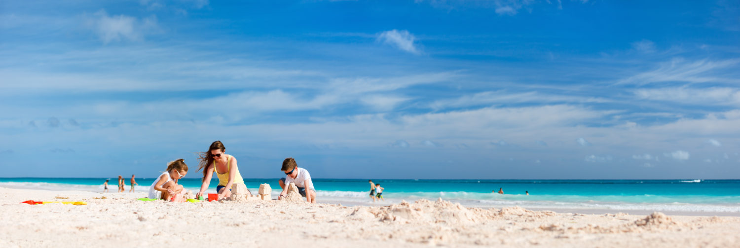 mother and kids making sand castle at tropical beach ID: 39978 Mother and kids making sand castle at tropical beach