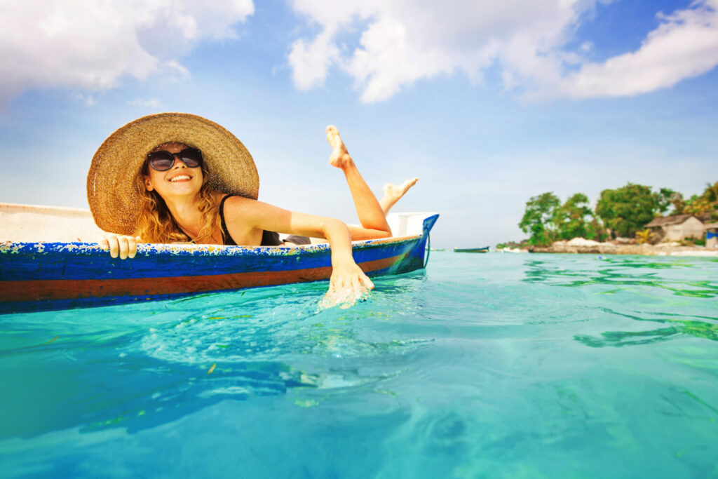 mujer chapoteando en un bote en una isla paradisiaca ID: 88847 mujer chapoteando en un bote en una isla paradisíaca