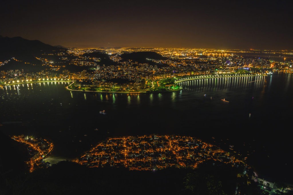 night cityscape view from the sugarloaf mountain on the guanabara