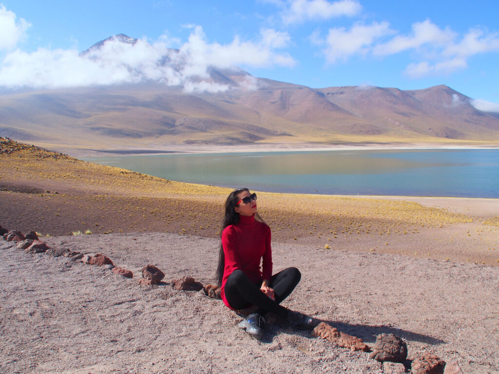 nina cerca de la laguna del altiplano en el desierto
