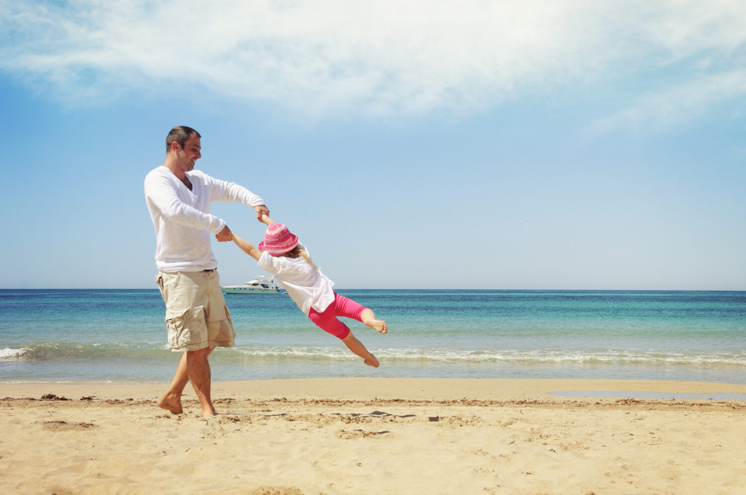 Niño feliz jugando con su padre. Concepto de vacaciones de verano