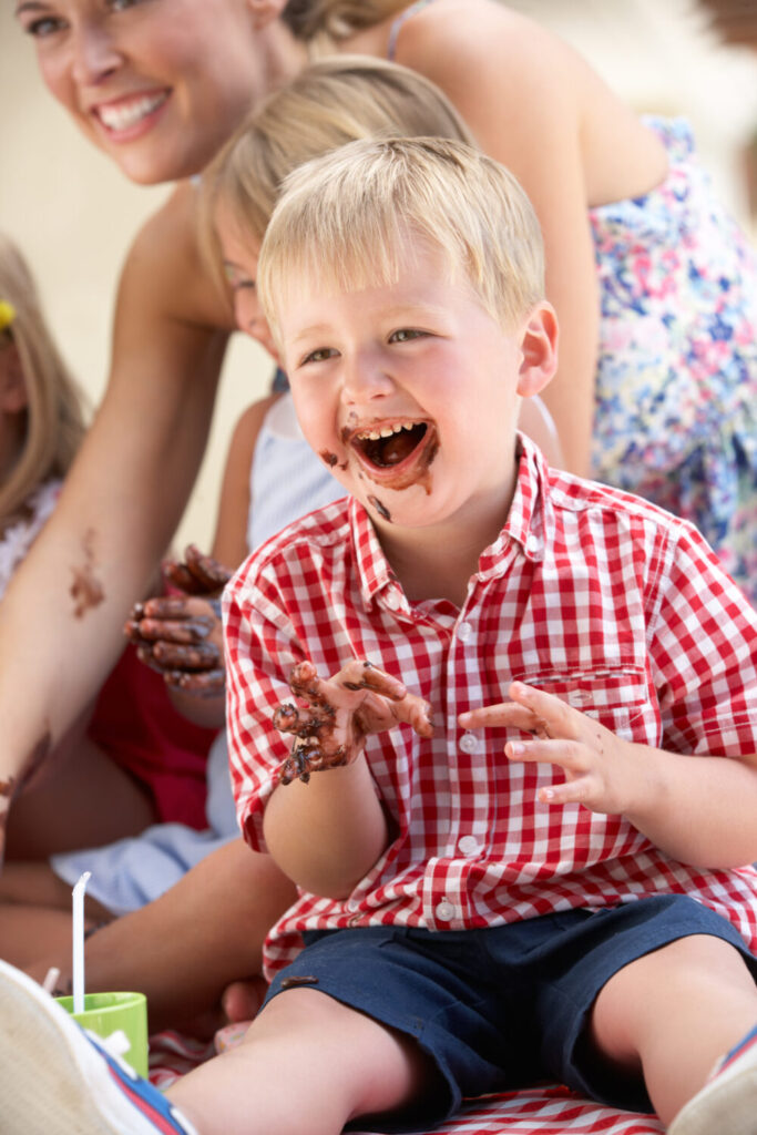 ninos y madres comen pastel en la fiesta del te ID: 91167 Niños Y Madres Comen Pastel En La Fiesta Del Té Al Aire Libre
