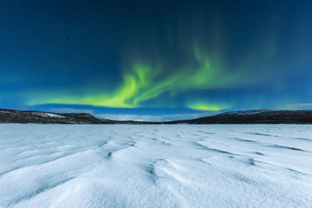 Northern lights above Ropijarvi, Ropinsalmi, Enontekioe, Finland