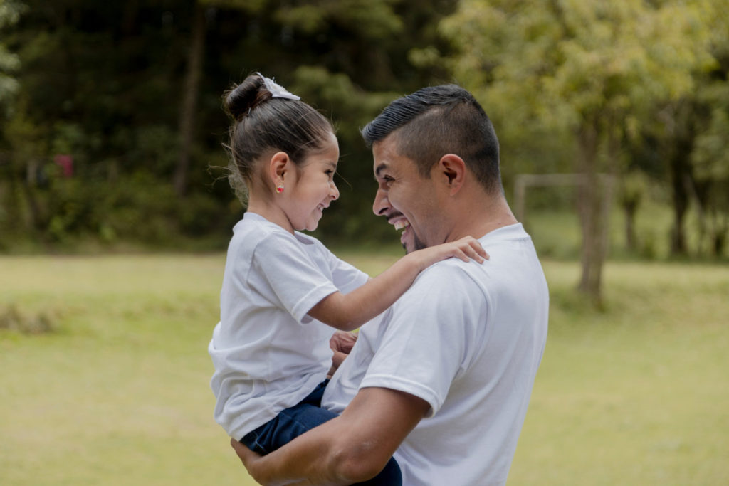 padre hispano abrazando a su pequena hija en el parque