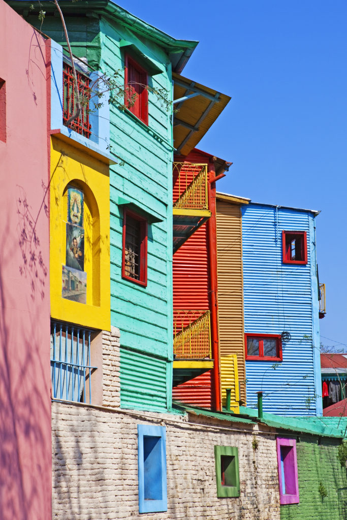 Argentina, Buenos Aires, La Boca, brightly painted houses