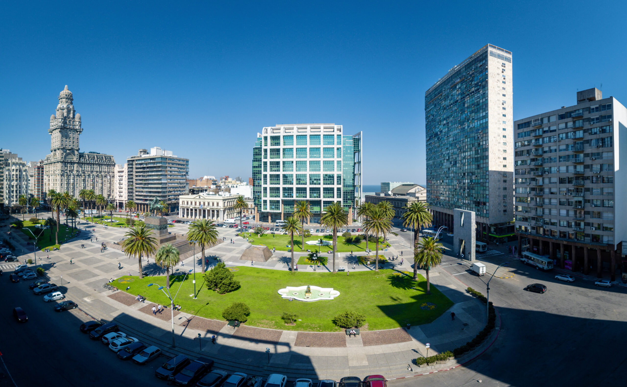 Panoramic view of Plaza Independencia (Independence Square) in Montevideo downtown, Uruguay