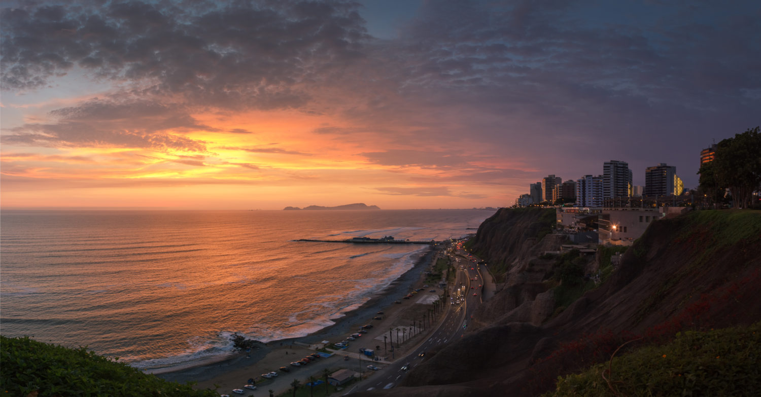 panoramic view of the costa verde high way in sunset
