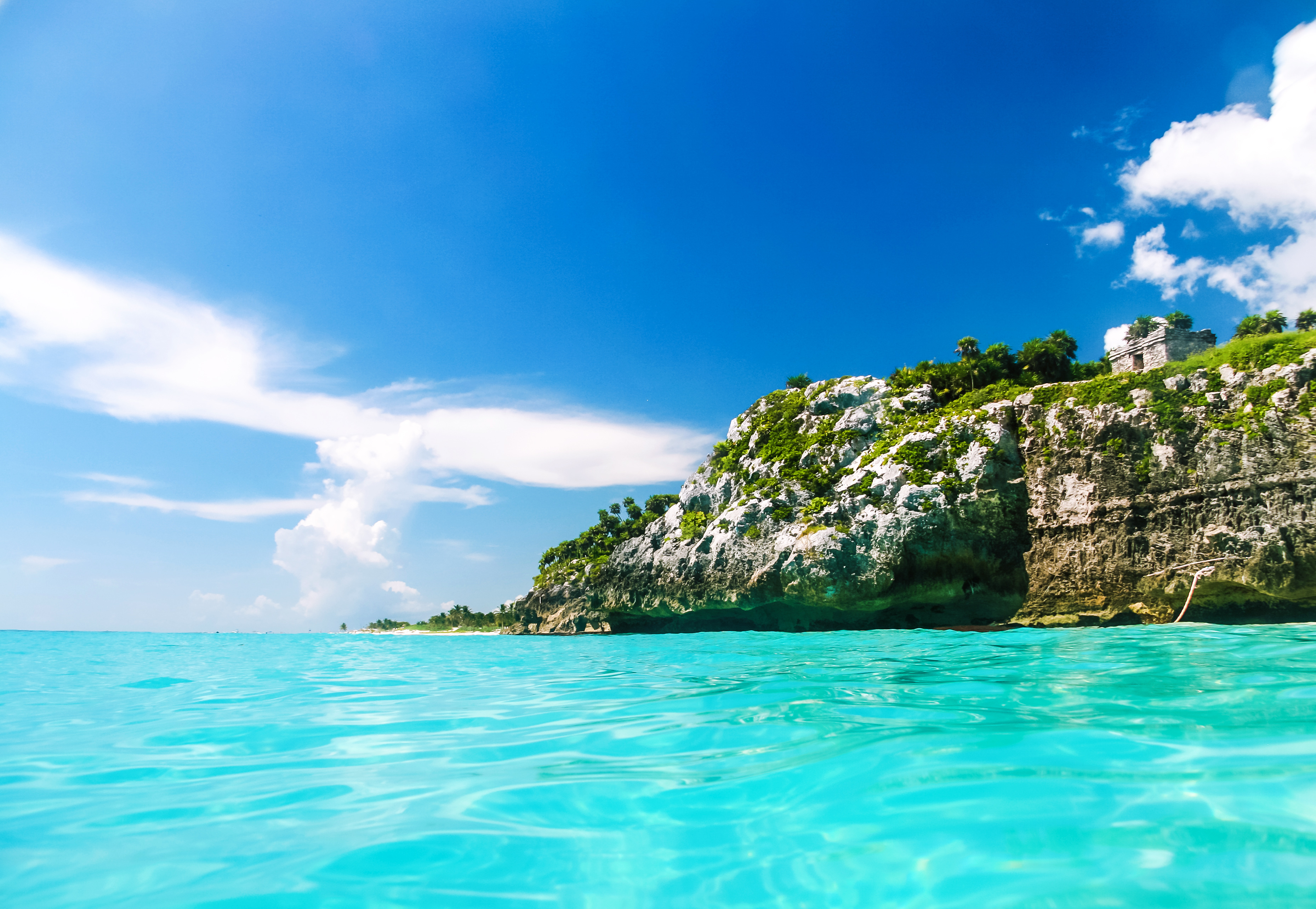Panoramic view of the mayan ruins of Tulum, Mexico