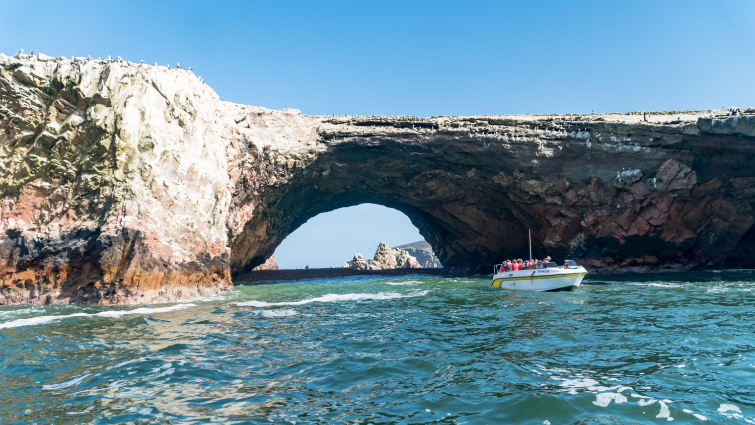Panoramic viewy from Paracas National Park in Peru with different bird kinds. Ica, Peru