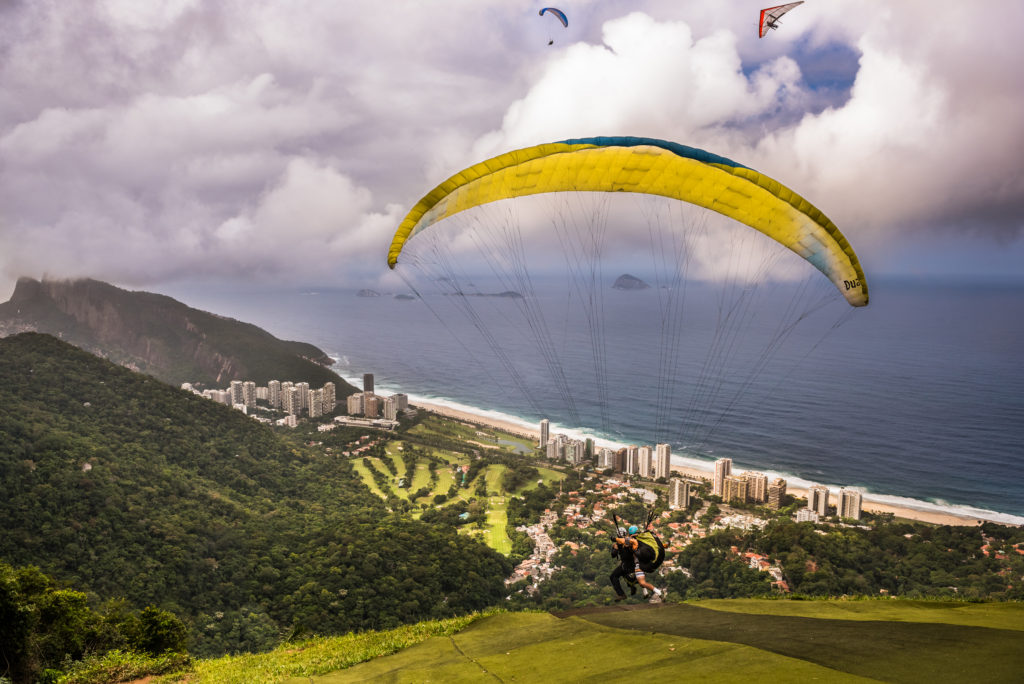 Paragliders take off above Rio de Janeiro