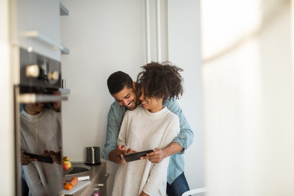 pareja afroamericana usando tableta en la cocina ID: 88274 Pareja afroamericana usando tableta en la cocina.