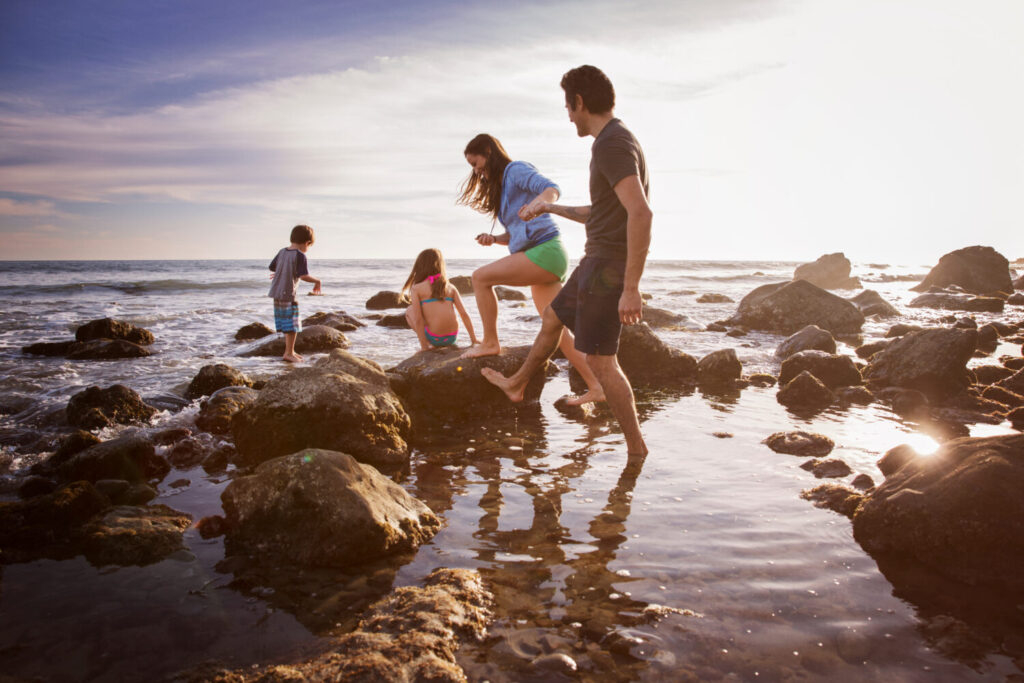 pareja caminando en una playa rocosa con ninos ID: 81198 Pareja caminando en una playa rocosa con niños