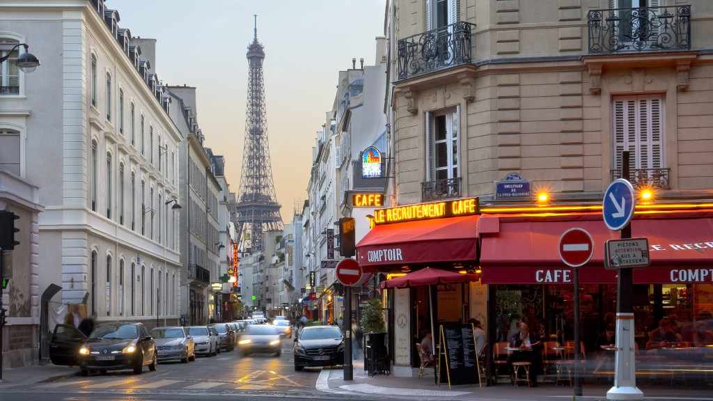 Paris cafe with view of the Eiffel Tower