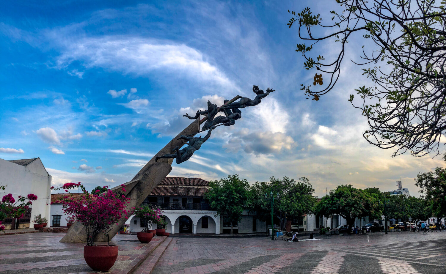 Parque principal en Valledupar, Colombia, con un hermoso cielo azul