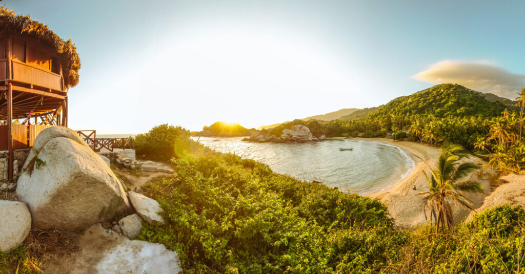 Parque Tayrona, Colombia – December 19 2012: Early morning on a beach in Parque Tayrona.