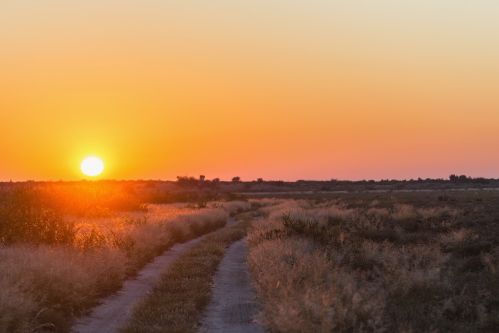 Piste at sunrise, Central Kalahari Game Reserve, Kalahari, Botswana
