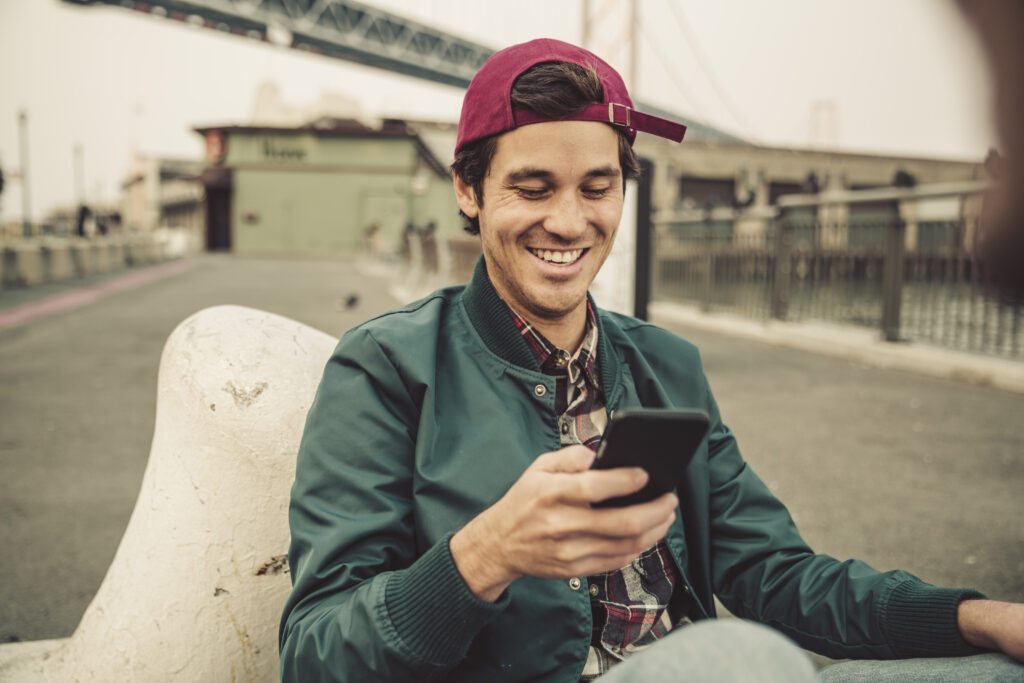 Portrait of smiling young man using cell phone