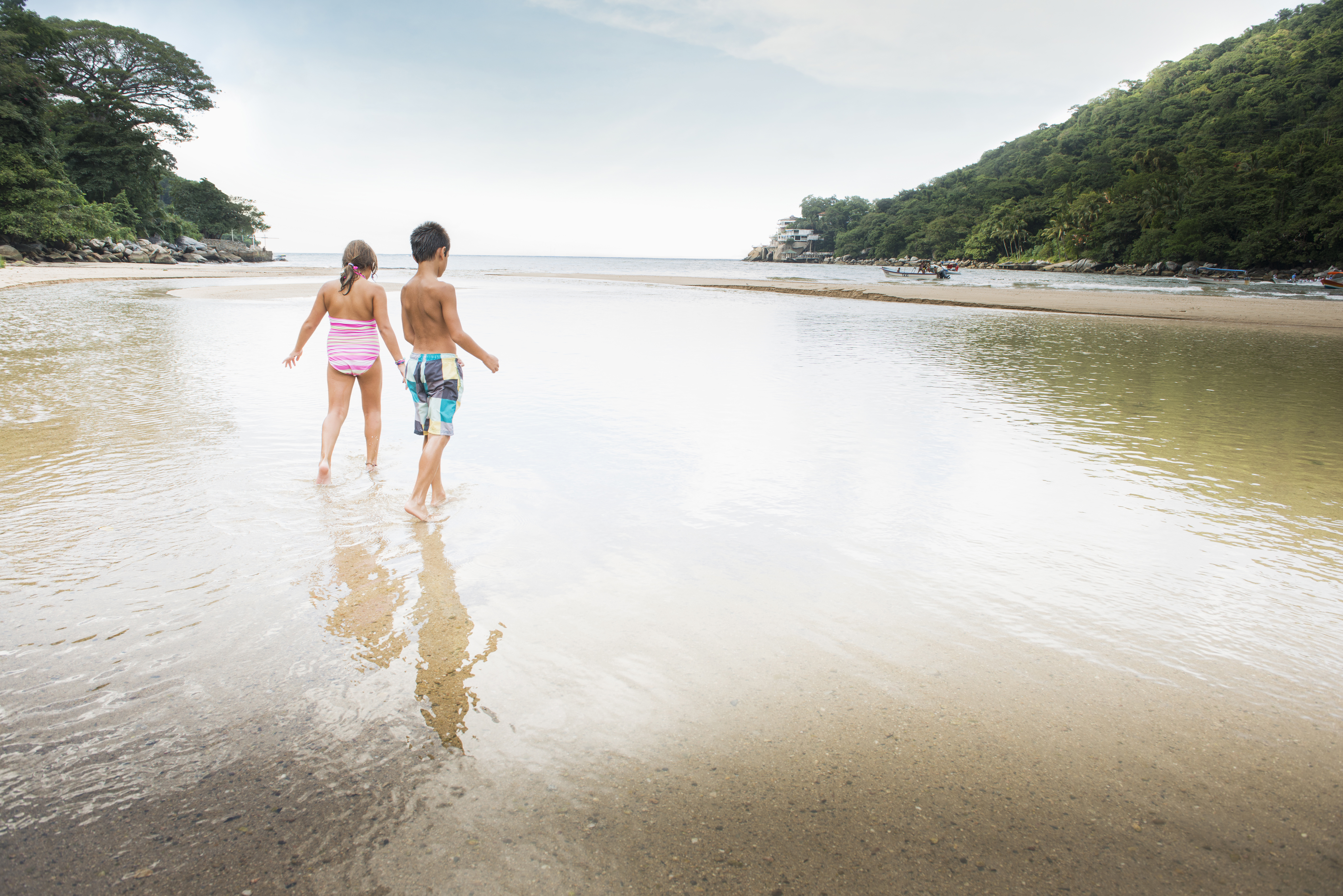Race children playing in water on beach