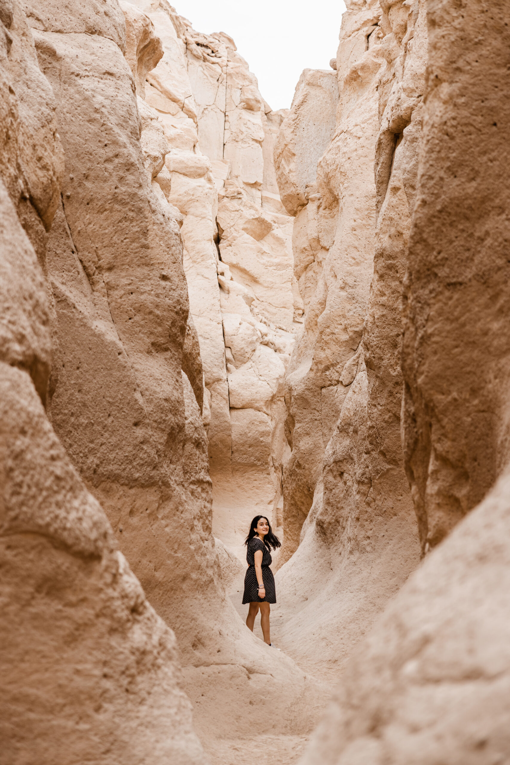 Rear view of woman walking on rock formation,Arequipa,Peru